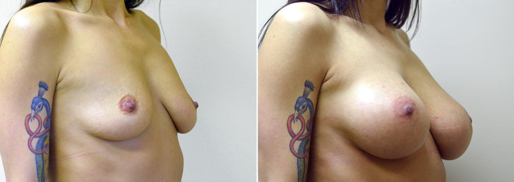 This woman was interested in a breast augmentation to create more fullness and balance to her proportions. Dr. Sobel placed 350 cc saline implants through a transaxillary incision. Her results were beautiful and gave the patient a natural, balanced appearance.