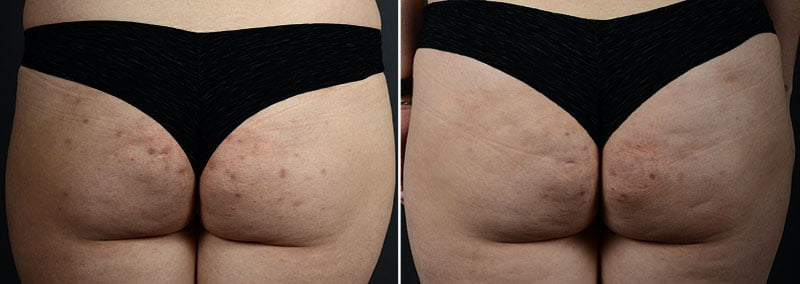 Patient wanted more contouring to her buttocks and less volume in near her back bar roll. Dr. Sobel did liposuction on the back bra roll area and did a fat transfer to the buttock using the fat from her upper and lower abdomen, waist and hips.